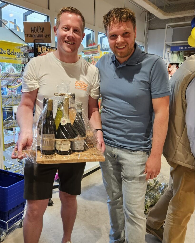 Uit handen van onze voorzitter Patrick ontving hij een mooi gegraveerde borrelplank met lekkere wijnen. Het vermoeden bestaat dat de flessen allemaal al op zijn…